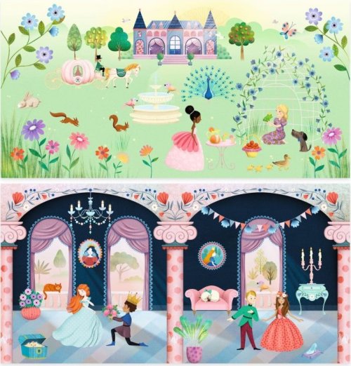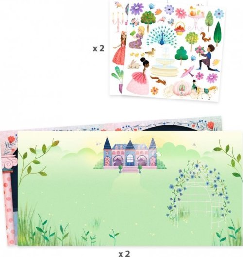 Samolepkový set k vytvoření dvou panoramatických obrázků s tématem princezen na zámku.