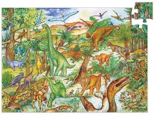 Krásně ilustrované puzzle s motivem pravěkých obyvatel planety Země. Přiložená brožura s informacemi o dinosaurech je v cizích jazycích. Rozměr složeného puzzle cca 63 x 45 cm