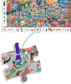 Dětské puzzle DJECO Observation spojuje skládání se zábavnou hledací hrou. Složte obrázek a zahrajte si postřehovou hru, kdo dříve najde různé předměty nebo zvířátka vyobrazená na rámečku. Součástí balení je plakát ve velikosti složeného puzzle sloužící jako předloha. Rozměr složeného puzzle cca 61 x 38 cm