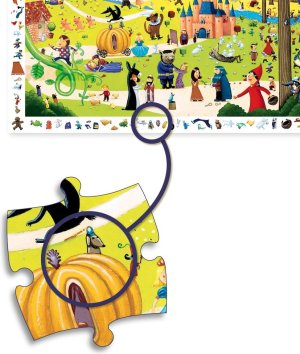 Dětské puzzle DJECO Observation spojuje skládání se zábavnou hledací hrou. Složte obrázek a zahrajte si postřehovou hru, kdo dříve najde různé předměty nebo zvířátka vyobrazená na rámečku. Součástí balení je plakát ve velikosti složeného puzzle sloužící jako předloha. Rozměr složeného puzzle cca 61 x 38 cm