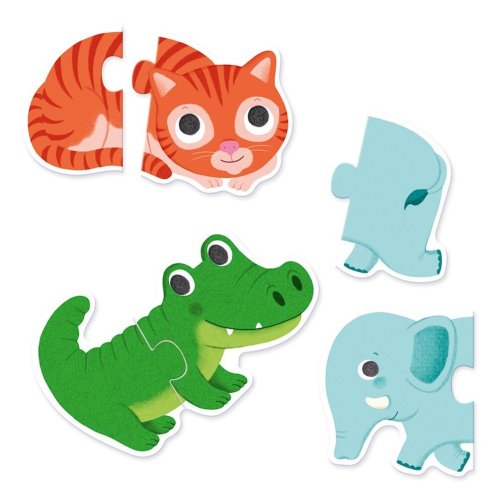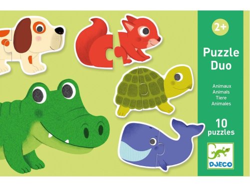 deset dvoudílných obrysových skládaček s motivem různých zvířátek pro nejmenší děti velké dílky každé puzzle zvířátko se skládá ze dvou dílků baleno v kartonové krabičce s ouškem na přenášení ekologické balení šetrné k životnímu prostředí