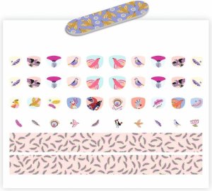 Sada obsahuje větší i menší samolepky, které stačí jednoduše odlepit, nalepit, stisknout a máte hotovou manikúru. Samolepky jsou voděodolné a vydrží obvykle až 1 týden. V sadě najdete 30 samolepek na nehty, 10 menších samolepek, 1 proužek vzorů k vystřižení a 1 pilník na nehty. Ideální pro děti, které si chtějí užít zábavu při zdobení nehtů bez chemických přípravků.