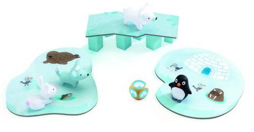Skvělá hra pro děti od 2,5 let, která rozvíjí jemnou motoriku a učí děti spolupráci a týmové hře. Set obsahuje čtyři zvířátka - tučňáka, polárního medvěda, bílou lišku a bílého zajíčka. Zvířátka se snaží dostat do svého iglú, ale led se může kdykoli propadnout. Tato hra vyžaduje spolupráci všech hráčů, aby mohli vyhrát jako tým. K dispozici jsou 3 herní desky, rybaření na ledu díry, most, igloo a 6 pilířů. Rozměr balení 21 cm x 5 cm x 21 cm Pro 2-4 hráčůVěk 2 1/2- 5 let