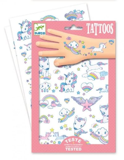Obsah balení: 2 archy (21 x 14 cm) s motivem duhy, jednorožce a mráčku.