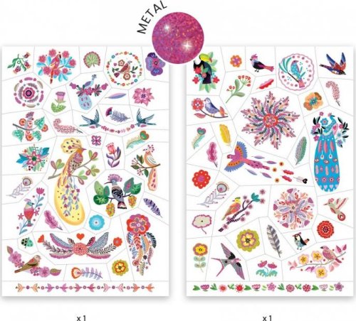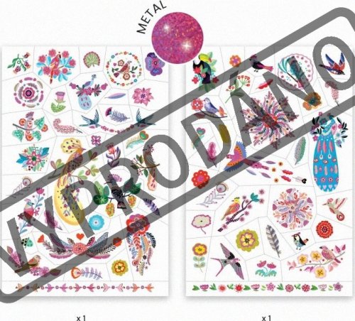Tetování v překrásných ilustracích pestrobarevných ptáků. Dermatologicky testováno.
