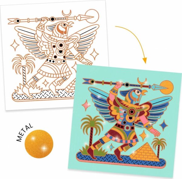 Omalovánky s motivem Egypta se zlatými vyvýšenými okraji, pro snadnější vybarvování bez přetahování.