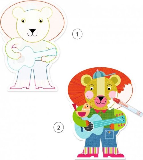 děti pomocí tužky naplněné vodou vybarvují bílá místa zvířátek a objevují, co se pod nimi skrývá najednou se objevují vzory a mění se barvy - je to jako kouzlo jakmile stránky uschnou, zábava začíná znovu sada obsahuje: 4 obrázky, magickou tužku, podložku vše zabalené v praktickém obalu se zapínáním, aby se i na cestách nic neztratilo