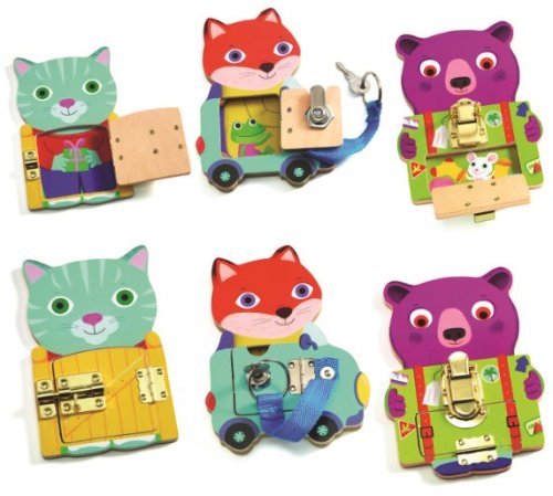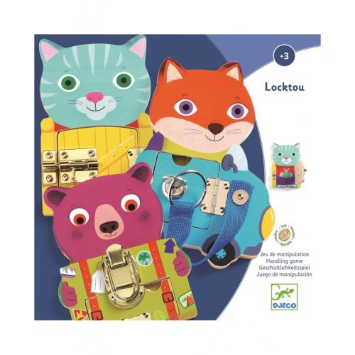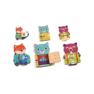 Tato 3 zvířata pomáhají dětem naučit se každodenní dovednosti zábavnou formou. Zamykací zvířátka, na kterých si děti procvičí motoriku. Zvířátka mají 3 druhy zámků. Velikost jednoho zvířátka 16 x 11 cm. Vhodné pro děti od 3 let.