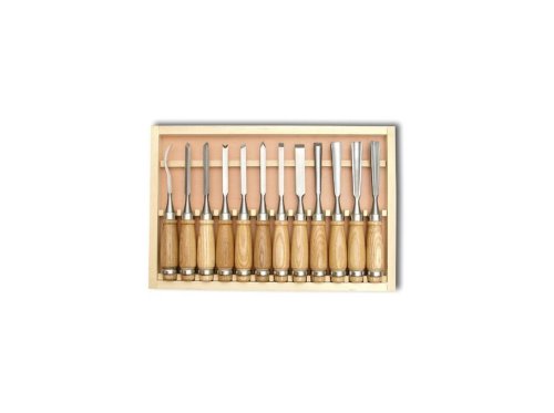 Sada řezbářských dlát obsahuje 12 ks ( ploché dláto, ploché - prohnuté, různé tvary šikmého dláta a různé druhy dřážkovacích dlát)