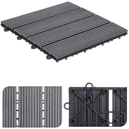 Sada terasových dlaždic umožní vytvořit dekorativní a funkční podlahu na Vaší terase, balkoně nebo různých přístupových cestách. Perfektně se hodí na místa se zvýšenou vlhkostí jako je bazén, sauna, vířivka, atd. Prkna jsou vyrobena z kompozitního materiálu WPC, který je odolný vůči nepřízni počasí a vyniká dlouhou životností. Sestavení podlahy z dlaždic je díky ,,zacvakávacímu" spojení velmi rychlé a snadné. Stejně jednoduše lze podlahu rozložit a přestavět na jiný tvar nebo jiné místo. Sada obsahuje celkem 6 kusů dlaždic.- set 6 kusů terasových dlaždic pro sestavení podlahy nebo cestičky- kompozitní materiál WPC složený ze dřeva a polymeru odolný vůči vlivům počasí- podlahu z dlaždic lze snadno rozložit a znovu sestavit- snadná instalace díky zásuvnému spojení- flexibilní využití, podlahu lze sestavit v různých tvarech- dlaždice lze využít v interiéru i exteriéru- perfektně se hodí na vaši terasu, balkon, pro zkrášlení povrchů a cestiček- mezi jednotlivými prkny lze dlaždici uříznout a podle potřeby ji tak zkrátit- sada obsahuje celkem 6 kusů dlaždic- jedna dlaždice má rozměry 30 x 30 x 1,7 cm- barva: šedá