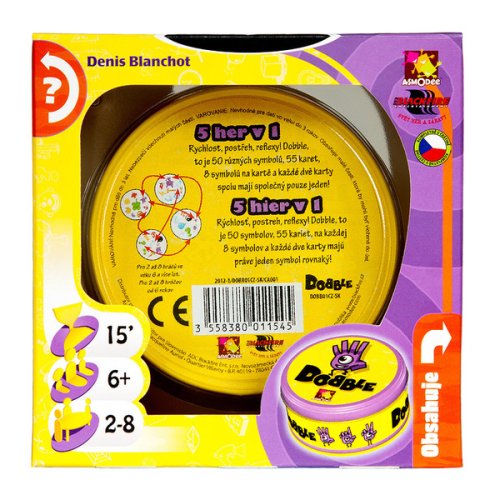 Hra nabízí zcela unikátní zábavu. Hráči zde hledají dva stejné symboly na kartách při různých verzích hry (v pravidlech je popsáno celkem 5 her). Super jsou kulaté karty i jednoduchá pravidla vysvětlená doslova za pár sekund. Cílová skupina jsou děti i rodiče - všichni, kdo se chtějí pořádně bavit a nemají čas pročítat dlouhá pravidla. Plechová krabička zaručuje bezpečí karet a jednoduše umožňuje mít hru vždy u sebe. Vyzkoušejte i Vy postřehový fenomén Dobble a jistě budete překvapeni, jak i tak jednoduchá hra může být zábavná!