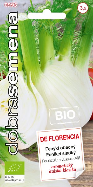 Odrůda: BIO FENYKL - DE FLORENCIA - výborná odrůda do salátů i k tepelné úpravě. Pěstitelsky nenáročná, vyberte pro ni ale záhřevnou a chráněnou polohu. Semena pochází z BIO produkce, byla pěstována na certifikovaných plochách s dodržením veškerých požadavků kladených na BIO osiva.