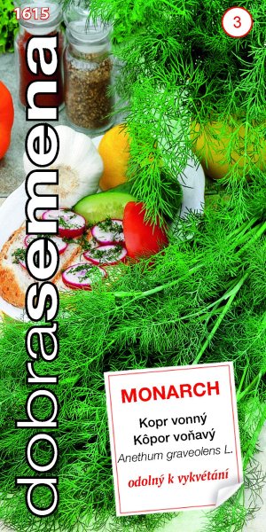 MONARCH – výnosná odrůda pro polní pěstování. Vyniká vysokou odolností proti vybíhání do květu, což prodlužuje dobu sklizně. Olistění je bohaté a husté, tmavě modrozelené barvy. Listy se vyznačují výborným aromatem. Vegetační doba je 75 – 85 dnů.