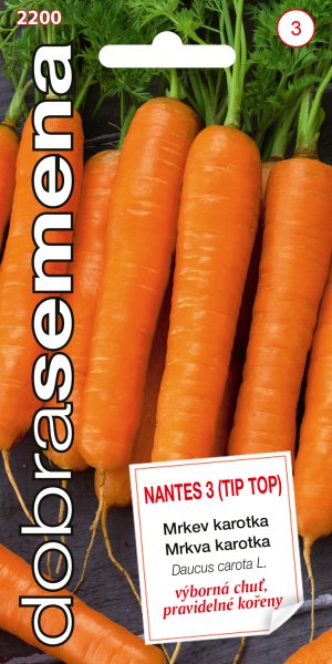 NANTES 3 (TIP-TOP) - raná karotka nantéského typu pro letní i podzimní sklizně. 16-20 cm dlouhé kořeny jsou pravidelně válcovité, s kulatou špičkou. Dužnina je sladká, jemná, sytě oranžově vybarvená, s vysokým výnosem.
