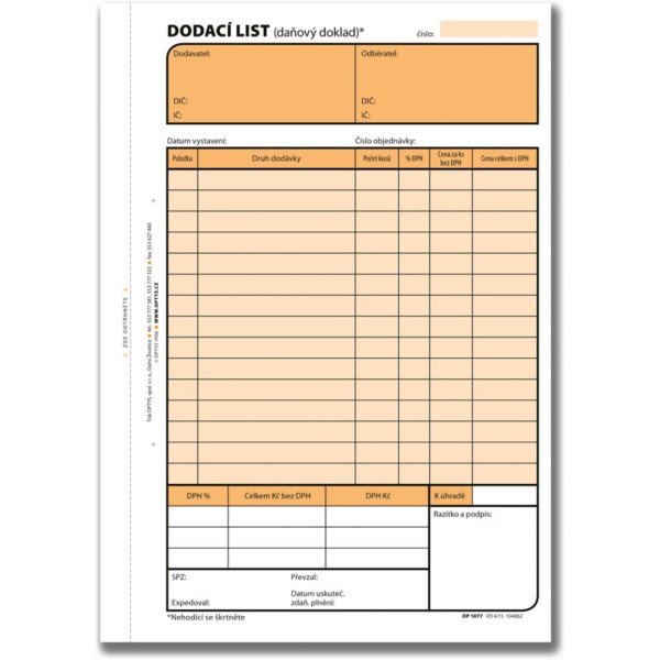 Dodací list, A5