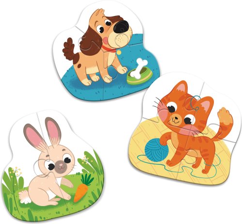 Dětské obrysové puzzle s motivem domácích mazlíčků.