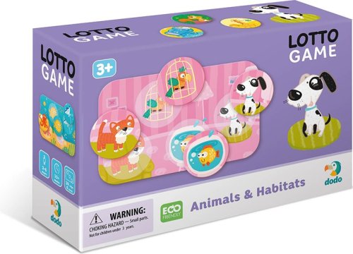 Zábavná dětská hra Lotto dětem přiblíží svět zvířat. Princip hry je podobný jako u klasického Binga. Každý hráč si vylosuje jednu kartičku a tu se následně snaží zaplnit odpovídajícími obrázky. Komu se podaří svou kartu zaplnit jako první vyhrává. Balení obsahuje: