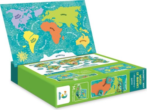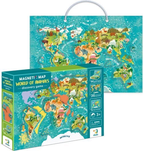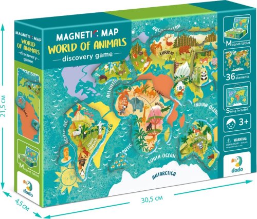 Magnetická hra Mapa světa se zvířaty je ideální vzdělávací pomůckou , díky které se vaše děti naučí poznávat svět přírody a rozmanitost zvířat na různých kontinentech.