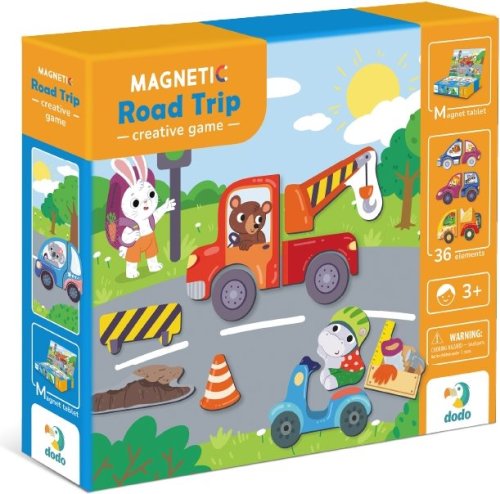 Sada obsahuje magnetickou desku a 36 magnetických prvků s dopravními prostředky a prvky dopravních scén. Děti mohou vytvářet vlastní silniční dobrodružství, přidávat vozidla, značky či překážky, a rozvíjet tak svou představivost a kreativitu. Magnetická deska je snadno přenosná, což umožňuje hru doma i na cestách. Hra podporuje jemnou motoriku a rozvoj jazykových dovedností. Krabička slouží jako stojan pro podkladovou magnetickou herní desku.