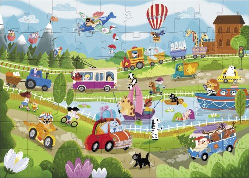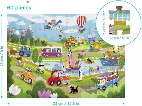 Balení obshauje kartičky s otázkami v cizích jazycích. Rozměr složeného puzzle cca 32 x 23 cm
