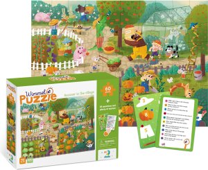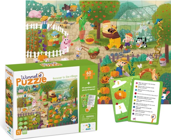 Balení obshauje kartičky s otázkami v cizích jazycích. Rozměr složeného puzzle cca 32 x 23 cm