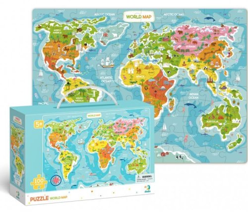 Pří skládání tohoto puzzle poznávají děti jednotlivé světadíly. Popisy na puzzle jsou v anglickém jazyce. Rozměr složeného puzzle cca 64 x 46 cm