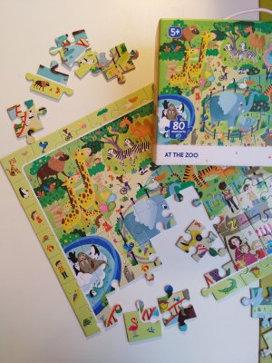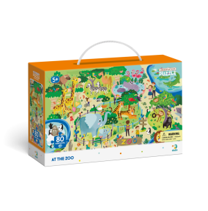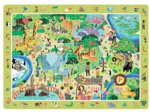 Vzdělávací puzzle, které obsahují barevné obrázky různých zvířátek, které žijí v ZOO. Po dokončení puzzlí mohou děti hrát hru „Najít a hledat“, kde určují umístění zvířat v ZOO. Puzzle navržené tak, aby bylo zábavné i vzdělávací, s barevnými vzory, které napomáhají rozvoji dítěte. Velikost složeného obrázku: 45 x 31 cm Rozměr balení: 25 x 16 x 6,5 cm Vhodné pro děti od 5 let