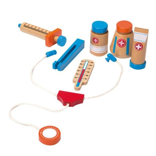• sada obsahuje 1 doktorskou tašku + 7 kusů příslušenství: stetoskop, teploměr, injekci, pinzetu, tubu a 2 lahvičky