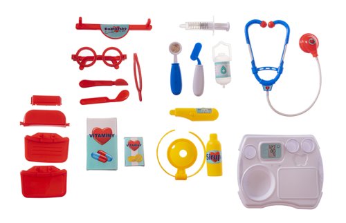 Sada obsahuje vše, co malý lékař potřebuje k ošetření pacientů. Všechny potřebné nástroje jsou uloženy v praktickém kufříku s madlem. Rozměr plastového kufříku: 24 x 22 x 9 cm Vhodné pro děti od 3 let.
