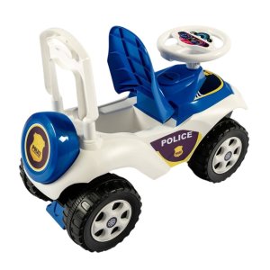 DOLONI Odrážedlo auto policie. Autoodrážedlo se stane oblíbeným dopravním prostředkem dítěte doma i venku. Konstrukce odrážedla je stylizována jako skutečné auto – karoserie je vyrobena z odolného plastu, má 4 široká kola s běhouny, volant a pohodlné sedadlo s opěradlem. Přední kola se otáčí spolu s volantem. Autíčko je odolné proti převrácení a vpředu i vzadu je ochrana proti padajícím předmětům. Pod sedadlem je prostor pro skladování malých hraček. Volant se otáčí do dvou stran. Dítěti můžete pomoci s jízdou pomocí tlačné rukojeti ze zadní strany. Bezpečnost především: Stabilní rám a speciální zarážky ochrání vaše dítě před pádem. Rozvoj a zábava: Během jízdy si dítě zlepší koordinaci, posílí svaly nohou a užije si spoustu zábavy. Jasný design: Jasné barvy a zajímavý design upoutají pozornost každého dítěte. Pohodlná přihrádka pod sedadlem: Pod sedadlem se nachází speciální prostor na hračky. Charakteristiky: Rozměry: 62 × 34 × 28 cm (délka × šířka × výška) Maximální zatížení: 30 kg Hmotnost vozíku: 2,5 kg