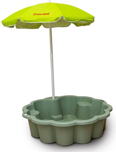 Pískoviště ve tvaru květiny se 2 vnitřními sedátky a slunečníkem. Vyrobeno z EKO surovin na bázi pšeničné slámy = snižování uhlíkové stopy a ekologičtější budoucnost. Vhodné na zahradu, terasu či balkón.