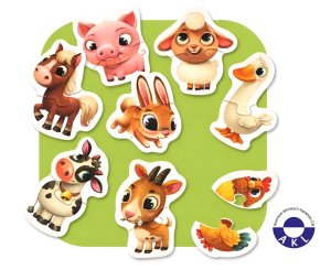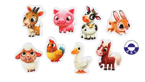 Puzzlika, nová značka puzzlů s moderním kreativním designem, přináší pro malé děti aktivní učení formou zábavné hry. Naučné puzzle Domácí zvířátka obsahuje 16 velkých pevných puzzlů, ze kterých poskládáte 8 samostatných obrázků zvířátek žijících na farmě. Naučné puzzle je skvělá hra pro malé děti, která u nich rozvíjí logické myšlení, představivost, kreativitu, jemnou motoriku a různé poznávací znalosti. Puzzle jsou vyrobeny z velice pevného vícevrstvého kartonu s lesklým povrchem. Karton byl vyroben z kvalitního, ekologicky pěstovaného dřeva. Puzzle je možné otřít vlhkým hadříkem. Nevhodné pro děti do 2 let. Vyrobeno v Evropě.