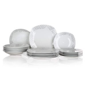 18dílná talířová sada square CHARME je vyrobena z porcelánu.