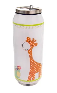 Termoska ve tvaru plechovky s dekorem ŽIRAFA.