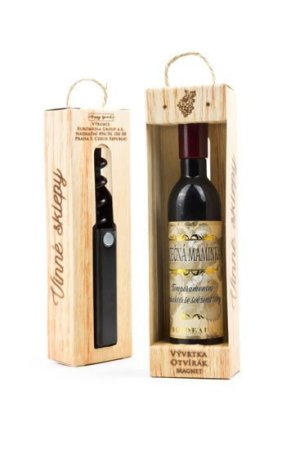Vývrtka ve tvaru vinné lahve s originálním potiskem viněty je vhodným dárkem pro všechny milovníky vína.