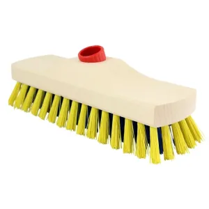 Kartáč rýžák na podlahu, dřevěné nelakované tělo, plastová vložka pro násadu s hrubým závitem, vlnitá syntetická vlákna.