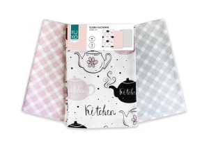FARO Kuchyňské utěrky Kuke s potiskem sada 3 ks Konvice 40/60 Stylová sada tří bavlněných utěrek Kuke s potiskem je praktickým pomocníkem i moderní dekorací vaší kuchyně.