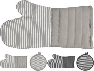 Kuchyňská textilní chňapka s poutkem na zavěšení, vhodná na manipulaci v troubě nebo na grilování.