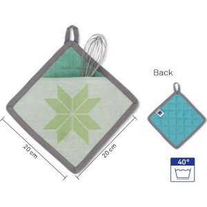 - materiál: 100% bavlna- praktická kapsa na kuchyňské náčiní- oko na zavěšení- lze prát na 40°- rozměry: 20 x 20 cm