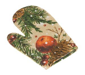Kuchyňská chňapka VÁNOČNÍ vrchní materiál 55% Bavlna, 45% Polyester 180g/m2 výplň netkaná textilie vnitřní látka 100% Bavlna praní na 30°C mírný postup sušit v sušičce nedoporučujeme žehlit do 110°C …