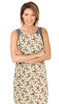 Kuchyňská zástěra v pastelových barvách.