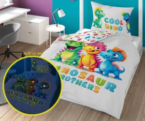 DETEXPOL Povlečení Dinosaur Brothers svítící 140/200, 70/80 Bavlněné povlečení na velkou postel, zapínání na zip, povlečení má z každé strany jiný motiv, viz. foto, povlečení svítí ve tmě po nasvícení …