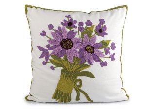 Povlak na polštář zdobí designová výšivka květin, bude se v interiéru vyjímat celoročně.