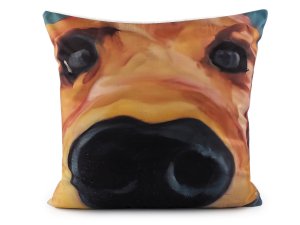Sametový povlak na polštář zdobí fotopotisk zvířat.