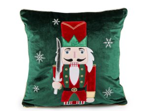 Sametový povlak na polštář zdobí vánoční motiv louskáčka.