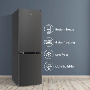 Kombinovaná lednice s mrazákem dole o celkovém objemu 157 litrů.