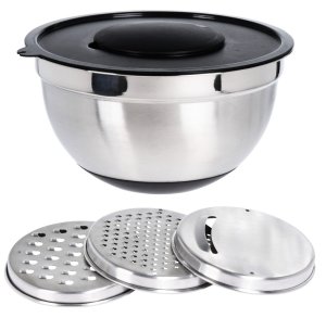 - multifunkční nerezová mísa se třemi struhadly- mísa je vyrobena z nerezavějící oceli a víko je silikonové- mixovací mísa a struhadlo v jednom- díky částečnému otvoru v silikonovém víku můžete mixovat …