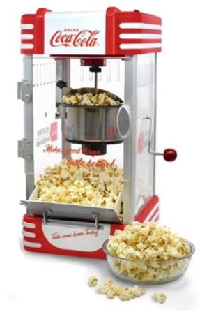 Popcornovač COCA COLA SNP27CC Tento stylový popcornovač bude hvězdou každé party Má velkou nerezovou ocelovou nádobu s integrovaným míchacím systémem a může připravit až 10 šálků popcornu na jednu porci …