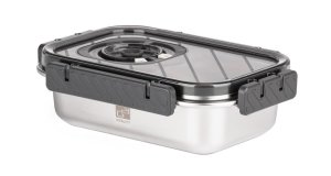 Nerezová vakuovací dóza o objemu 1000 ml, víko s vakuovým ventilem, teplotní odolnost -100 až +400 °C, bezpečný hygienický nerez materiál, kompatibilní s vakuovačkami G21.