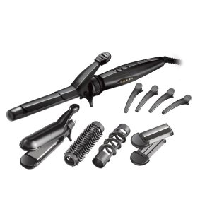 Horkovzdušná kulma 2 stupně nastavení teploty Tlačítko studeného vzduchu Keratin funkce Funkce ionizace s antistatickým účinkem 7 výměnných nástavců Koncentrátor Kulmovací kleště (průměr 18 mm, pracovní …